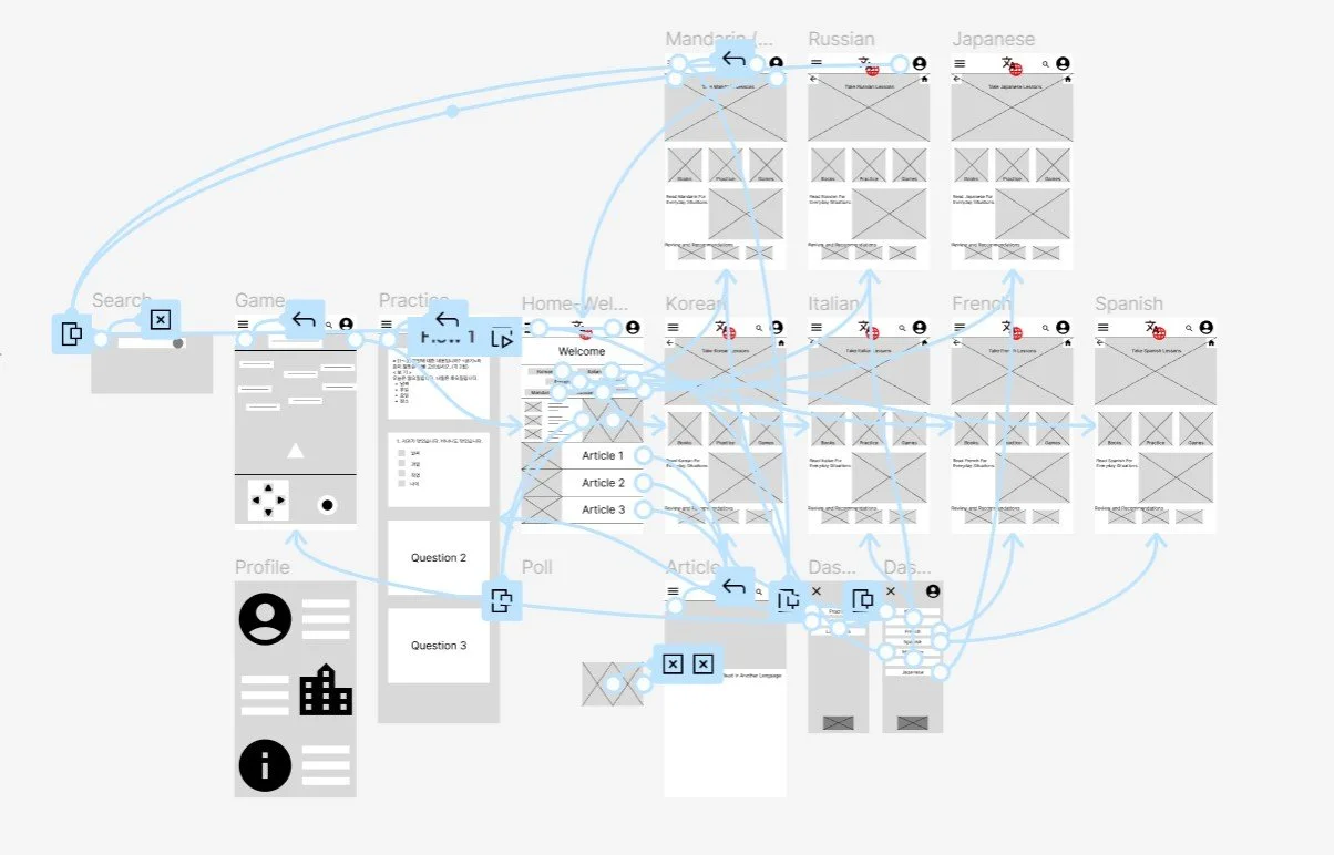 I used personal data on language learning to develop interview questions, which were then used to conduct user interviews. Most interview participants reported feeling frustrated, but they didn’t actively try to improve their language learning education. The feedback received through research made it very clear that users would be open and willing to work towards reading in another language if they had access to an easy-to-use tool to help guide them.
